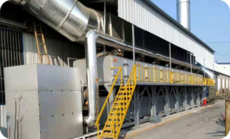 This project belongs to the case of rubber industry, the air volume is 120,000m³/h. This project adopts the process of activated carbon adsorption + CO, the concentration of exhaust gas is designed to be 100-300mg/m³, and this set of equipment is equipped with our self-developed sulfur-resistant catalyst. In order to ensure the local emission standard of 10-30mg/m³ and to prevent the poisoning of catalyst, the project is equipped with more than 20 sets of equipments, which finally achieve the stable emission of exhaust gas and meet the local environmental protection requirements.
