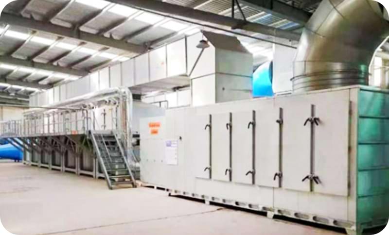 This project is for the automotive tire rubber industry. The exhaust gas will contain sulfides and a small amount of oil mixtures. Therefore, a spray tower + fume purifier + dry filtration + activated carbon adsorption +CO is adopted. The catalyst is equipped with an anti-sulfur type catalyst developed by our company to ensure the treatment efficiency. The air volume of the equipment is 150,000 m³/h and 80,000 m³/h respectively. The concentration is approximately 130mg/m³. During the normal operation of the equipment, the online monitoring outlet concentration is around 20mg/m³, which meets the local discharge requirements.