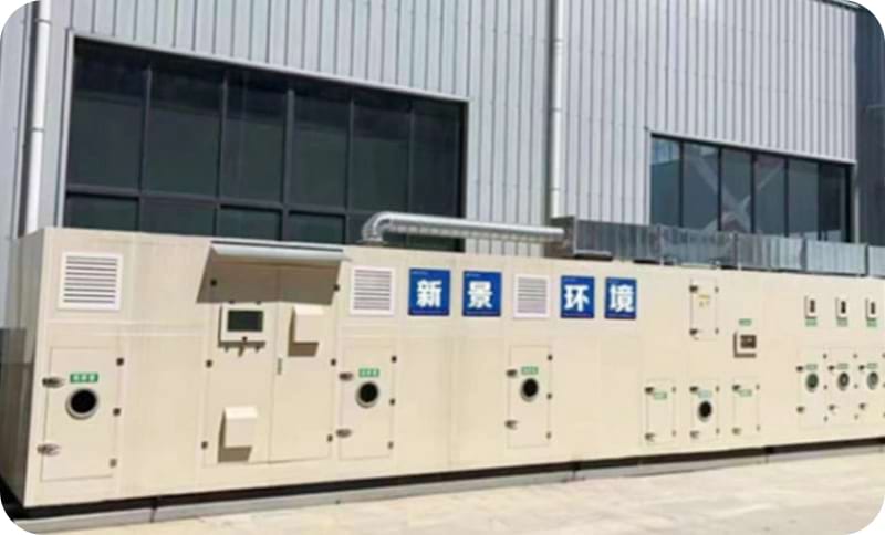 New material spraying workshop. Project operating conditions: 50,000 m³/h, zeolite rotor +CO integrated machine system, spray painting exhaust gas, concentration 430mg. The equipment selection for the project is based on the concentration and on-site working conditions analysis. Currently, the equipment is operating stably and the discharge at the outlet also meets the local discharge standards.